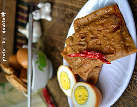 豆腐干炸一下,鸡蛋煮熟剥皮
