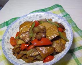 熟五花肉切成片;香干,西芹,红辣椒,斜切成片,生姜切丝,备用