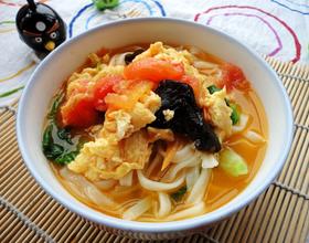 - 9. 捞出过水的青菜面条,然后把刚才煮好的西红柿鸡蛋汤撑在面条上即可食用了