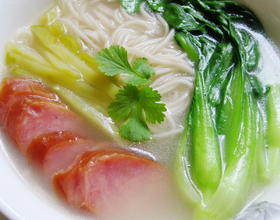 锅中烧水加入少许盐和油,焯烫油菜,这样焯过的油菜颜色翠绿还好看