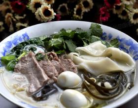 - 16. 把煮好的面倒入大碗内,放入香菜、鹌鹑蛋、羊肉片,淋上香油即可