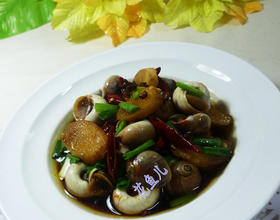 接着,下入焯好的肉螺,加点料酒翻炒一下。