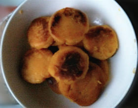 香油下锅,开始煎南瓜饼,将2边煎至焦黄色,在盖上锅盖兴一下