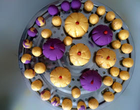 同样把紫薯捣成泥加入糯米粉,紫薯没有南瓜水分多,所以可以适当加点温水
