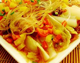 - 11. 再将余下的粉丝盖在酱汁上面,将余下的酱汁液淋在粉丝上。