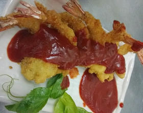 用鸡蛋加生粉和成糊.现粘糊在裹上面包糠.