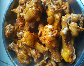 姜葱下锅爆香,放鸡腿豆瓣酱盐加水焖二十分钟
