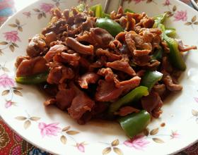 锅内倒入橄榄油,放入青椒煸炒,3分钟后直接倒入鸡件。加入盐蚝油调味。