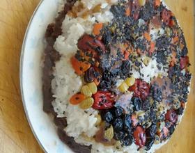 蒸好放葡萄干桂圆干拌匀黑芝麻