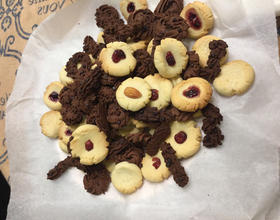 - 6. 烤箱预热,175度,上下火,20~15分钟;烤盘垫上油纸,粉糊装入裱花袋,或按照自己喜欢的方式弄出形状来