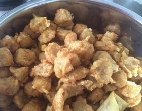 炸丸子的火候需要随时调整,温油升高时把丸子挤到油锅里,之后火稍稍调小一些,待丸子浮出油面再调大些,这是我在炸丸子过程中总结出来的。