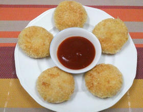 - 5. 分钟后,依序沾上面粉,蛋液,面包粉,