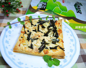 准备材料,海苔先剪成小丝段,烤箱预热180度c