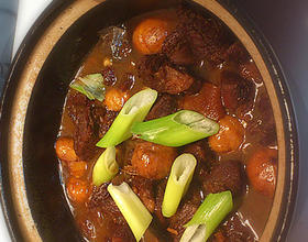 - 6. 用小火大约焖2个小时以后,放入栗子,再用小火焖四十分钟。调好味出锅就好啦!