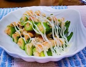 10.蒸好的秋葵.放降温.淋上美奶滋.即可食用.