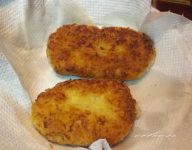 - 6. 放入薯饼煎炸微焦后翻面,继续煎炸至熟。(约5~6分钟左右)