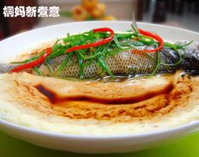 取出鲈鱼倒掉碟中汤汁,拣出葱,姜蒜。