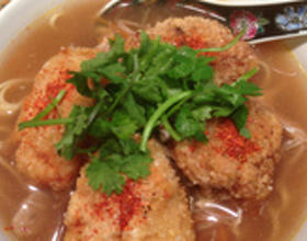 油热将鱼放入,以大火炸至金黄即可捞起(我用少油半煎炸的方式)用纸巾吸去多馀油份,将羹汤盛入碗中放上鱼肉酥洒上香菜末即可