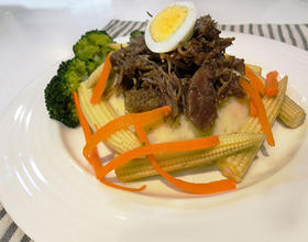 - 1. 制作薯泥,水煮马铃薯时加两茶匙盐,煮完捞起至新锅压成泥,拌入牛奶、奶油、黑胡椒粒调味即可。