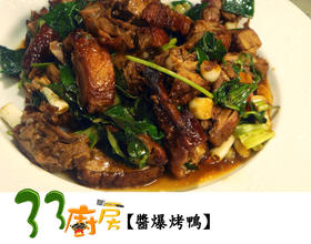 ★鸭肉本身是熟成的,再做这道菜时鸭肉要先煎过★酱爆烤鸭酱料比例沙茶酱:甜面酱:酱油 1:1:1★从锅边炝入少许绍兴酒及洒少许胡椒提味