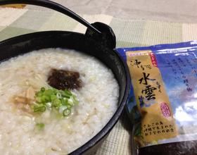 将粥盛碗,加入水云 、干贝、姜丝与葱花拌匀即可。