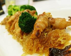 - 10. 粉丝、肉卷、花椰菜一起起锅摆盘即可。
