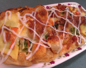 - 8. 将塑好形状的饼皮,涂上番茄酱,放少许的桂冠芙蓉豆腐