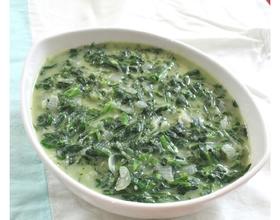 确实将菠菜水分挤干后,倒入锅内煮滚后,再续煮1-2分钟即可。