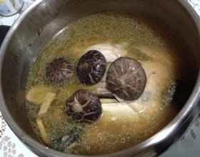 决定好要做的料理后先将全鸡退冰 - 2. 将干花菇先泡软,泡后香菇水留下备用。全鸡退冰后清洗放入锅中用煮开的开水汆烫过一次再把水到掉。 使用闷烧锅,倒入水及香菇水及香菇,水需盖过全鸡后加入,加锅盖盖紧,水煮开后丢入干贝继续熬煮,转小火闷煮60分钟关火再闷1小时后即可享受极鲜美味的汤品。