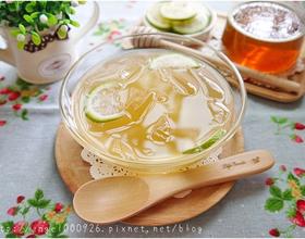 - 5. 吃的时候,将爱玉切小块,依喜好淋上蜂蜜或糖浆,挤一些新鲜柠檬汁,加一些冰块就好啰!(若没有蜂蜜,可用黄砂糖100g+水100cc煮成糖浆)