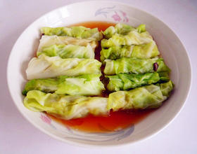 - 8. 从一边用圆白菜把肉馅紧紧卷起