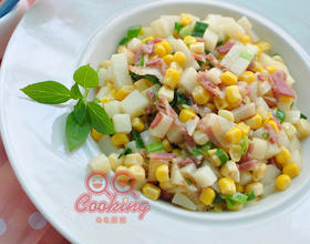 将碎培根以少许奶油煸香(也可以煸至微焦黄),最后再加上砂糖拌炒