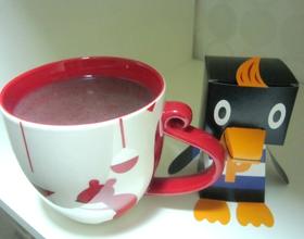 将打好的紫米浆倒入滚水中(8~10杯水)转中火熬煮并且不时搅拌。