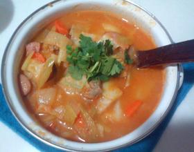 - 13. 就可以出锅了。在出锅前也可加入炒好的面粉,可是我老公不喜欢我就没放。放面粉是让汤更粘稠。