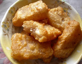 1、2、步骤4的马蹄糕已为熟品,可直接食用,也可冷藏保存数天,食用时再裹粉炸3、粉浆的部份可视个人习惯更改,也可直接用馄饨皮包马蹄糕去炸