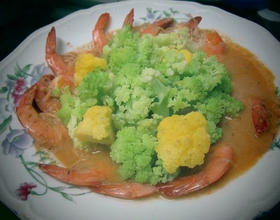 先将虾头取下,用少许奶油煎熟,加两匙高汤一併打成泥(用果汁机)