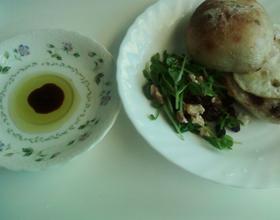 油醋比例3:1淋上豌豆苗.沾面包.好吃喔~