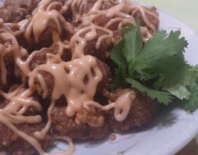 摆盘淋上千岛酱(沙拉加入适量番茄酱)。