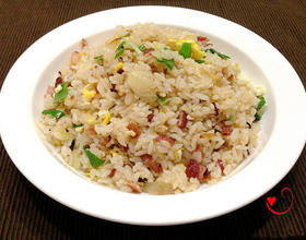 倒入压散的白饭[调味]最后加入炒好的鸡蛋
