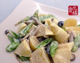 ★ 整包的茭白笋一次用电锅蒸熟,冷藏可保存1星期。★ 这道菜,也可以不泡冰水,吃温沙拉。★ 用蚝油取代美乃滋热量会更低,但颜色不讨喜(食感较差)。★ 各种口味的豆腐乳都可以。