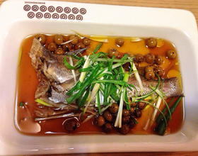 将鱼、葱段、姜片、米酒和破布子放入大同电锅,外锅放2/3杯水。