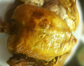 - 6. 好烫,想把它反过来,因为太熟了,所以不小心弄散了,影响了整体的美观哦。反过来后背面的颜色真的有烤鸡的feel了!哈哈。装好盘等妈咪回来试吃...妈咪吃过后问我这烤鸡是不是买来的。哈哈哈哈...成功咯!木木