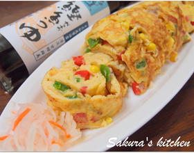 - 9. 倒入1/3的食材至半熟,再包覆原来的蛋卷