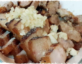 五花肉放凉后,切薄片,洒上柠檬椒盐及适量蒜末,即可享用。