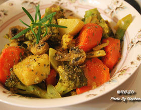 - 2. 锅中倒入约3大匙的橄榄油~爆香蒜片+洋葱丝~炒香后放进红萝卜翻炒出红萝卜素,再放进咖哩粉转小火拌炒....香味出来后放进洋菇,绿和白花椰,马铃薯块稍微翻炒一下倒进水和牛奶及适量的盐闷煮约15~20分钟!起锅后洒上适量的蒜粒粉和干燥欧芹即可完成!!