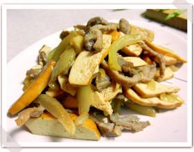 肉丝的部份 已先烫过 切条 直接放入拌炒