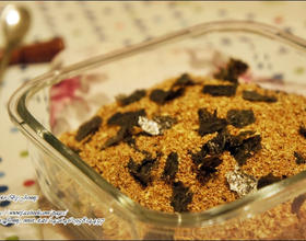 豆渣再次炒至干松时,再加入芝麻略拌炒即可熄火。