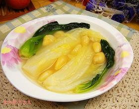 大白菜心洗精,青菜心洗精,银杏煮熟去壳。 - 2. 付上鸡汤做法: