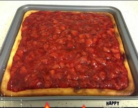 - 8. 将果酱倒在表面抹平,待凉后放入冰箱冷藏.