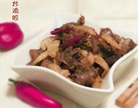 倒入鸡胗,加生抽2茶匙、糖1/8茶匙、高度酒或料酒1茶匙、胡椒面1/8茶匙,快速兜匀;(这次炒时没放盐,因萝卜本身有咸味)